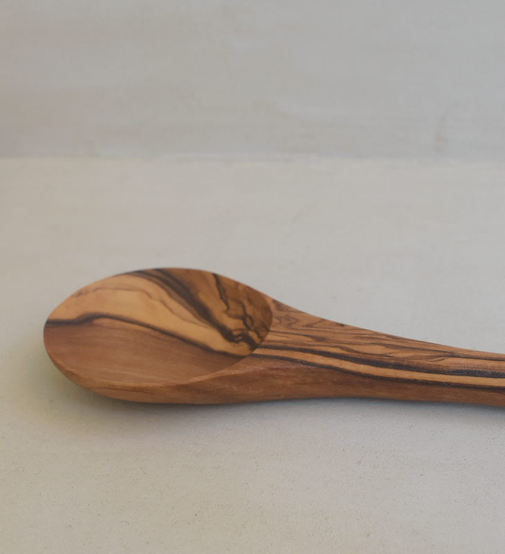 Cuchara hecha a mano con madera de olivo natural, sostenible y 100% reciclable.
