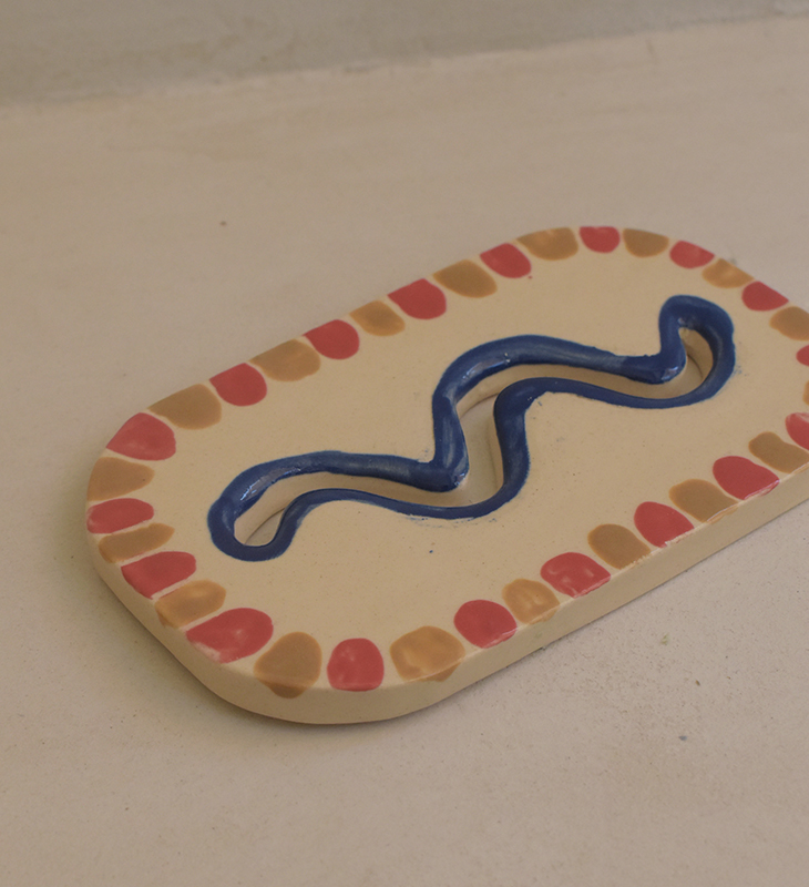 Utilizamos técnicas tradicionales de cerámica con arcilla blanca y altas cocciones. Pintada a mano a partir de engobes.