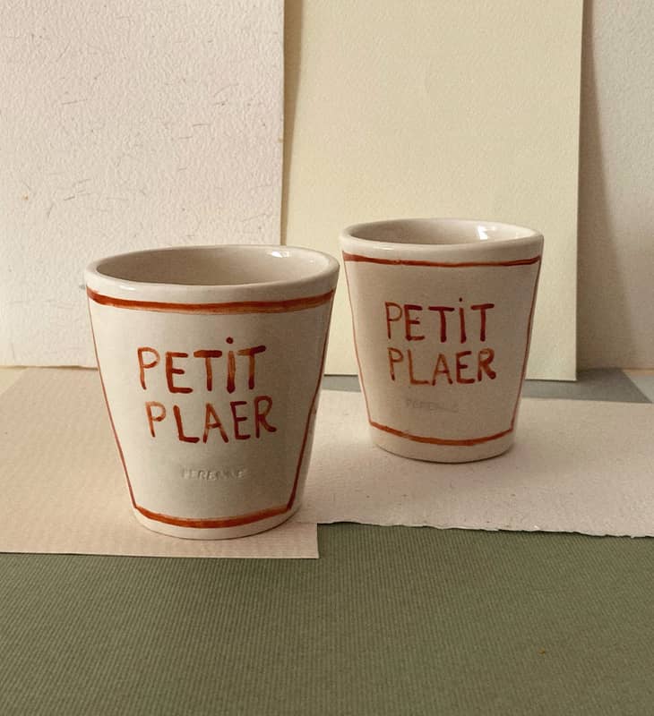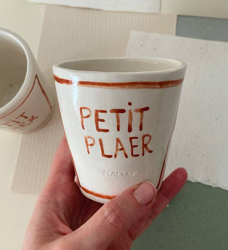 Petit plaer es nuestro vaso hecho a mano con mensaje manuscrito para aquellos que disfrutan de las pequeñas cosas del día a día.
