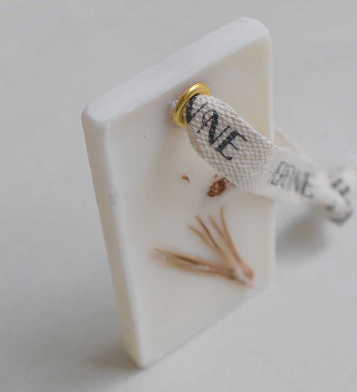 Ambientador sólido con aroma a Pino Mediterráneo, perfecto para colgar de la percha y ambientar el armario.