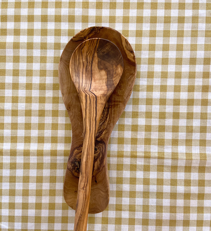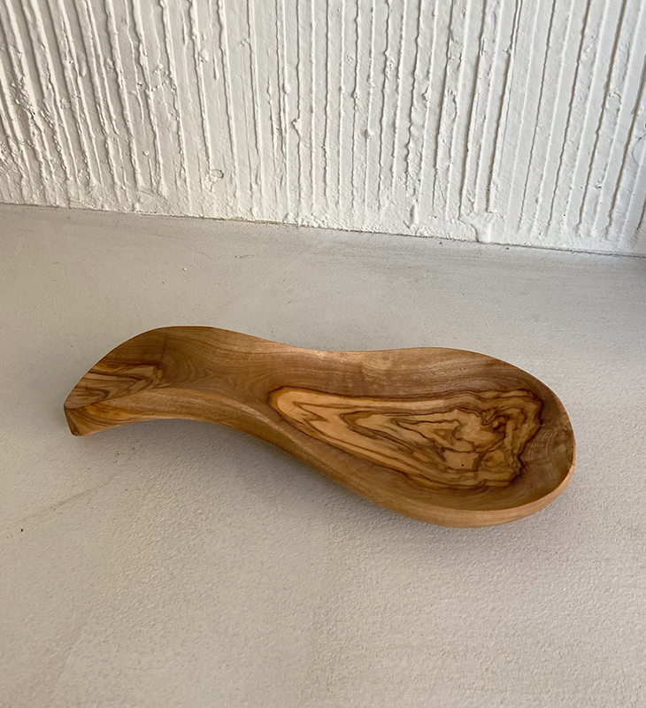 Reposacucharas hecho a mano con madera de olivo natural, sostenible y 100% reciclable.
