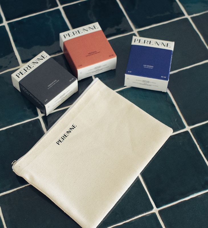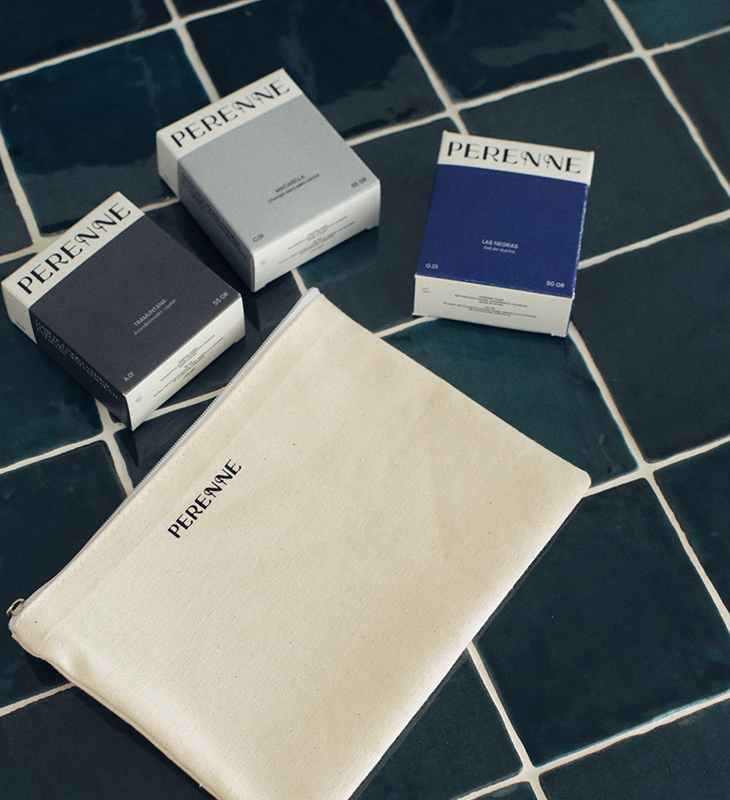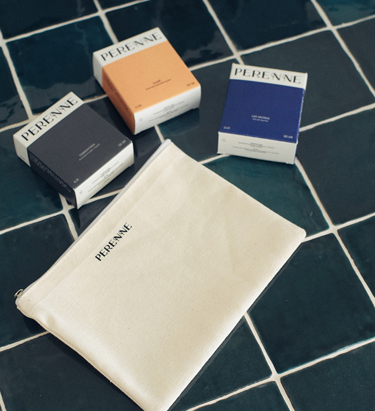 Cosmética sólida, sin envases plásticos, sin agua. Perfecta para viajar. Con la compra de los 3 sólidos juntos, llévate el neceser de algodón Perenne de regalo. Escoge tu champú.