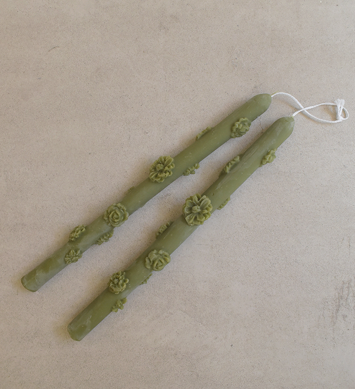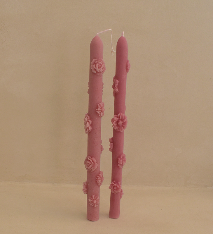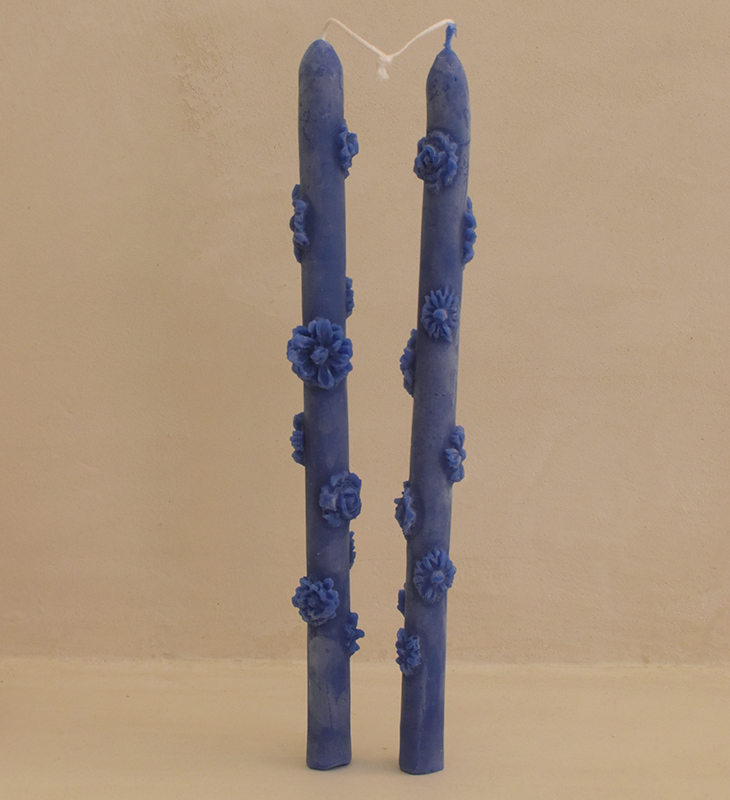 Vela candelabro de cera de abeja pura elaborada de manera artesanal. Disponible en diferentes colores a partir de pigmentos naturales.